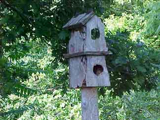 Old birdhouse in woods near Hembree property in Quebeck , White County, Tennessee