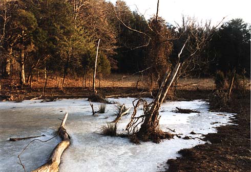 Frozen pond on Hembree Farm, Quebeck, White County, TN. |