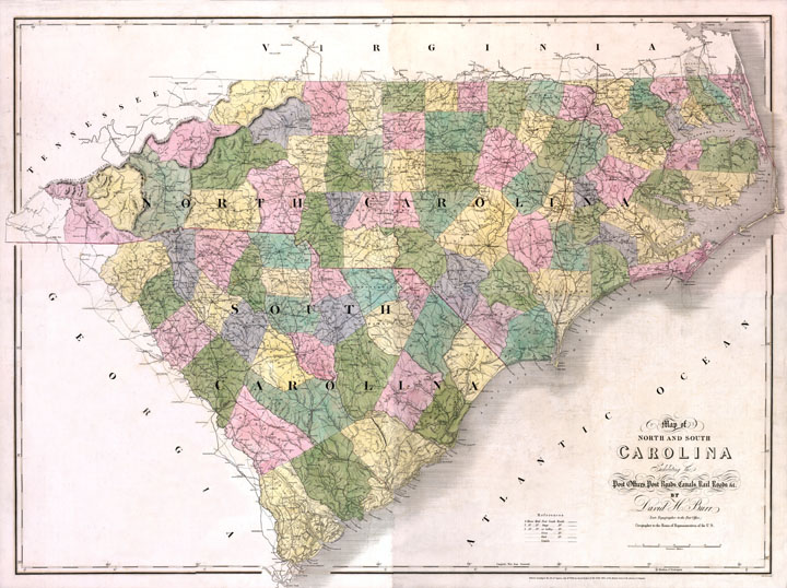 South Carolina; John H. Colton; 1855; Created from an original copy; 17" h x 22" w (slightly larger than the original). |