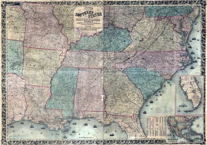Colton's Map of the Southern States; 1861. Created from a copy at the Library of Congress Archives; 38" x 54" |