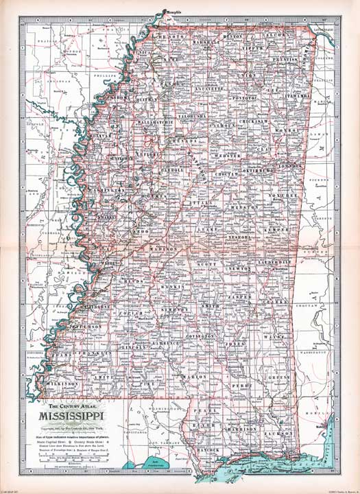Mississippi; Created from an original copy from The Century Atlas; 1897/1902; 17" h x 22" w (slightly larger than the original). |