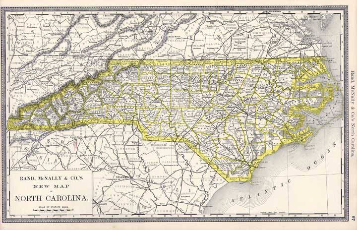 North Carolina; Rand McNally Business Atlas, 1872; includes complete index. Created from an original copy; 16" h x 24" w. |