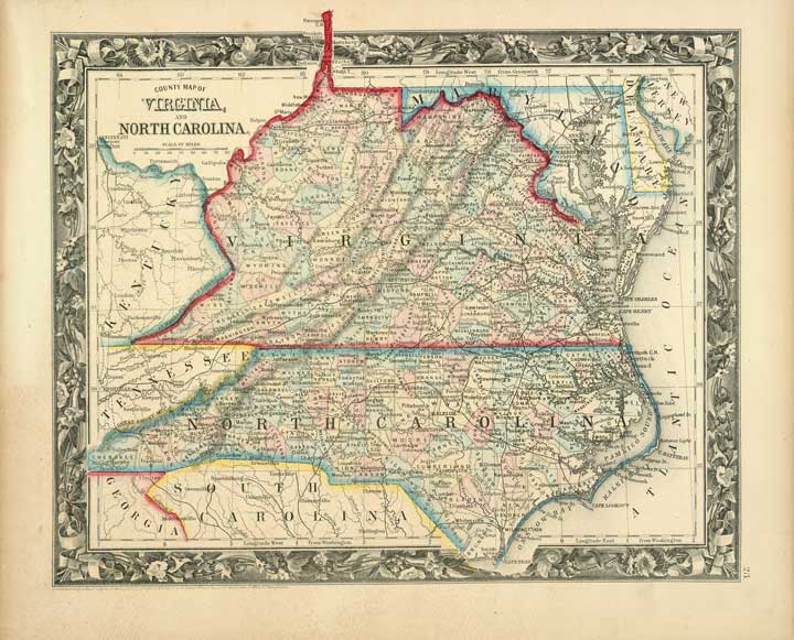 Virginia & North Carolina; S.A.Mitchell; 1860; Created from a copy at the Library of Congress; 17" h x 22" w |